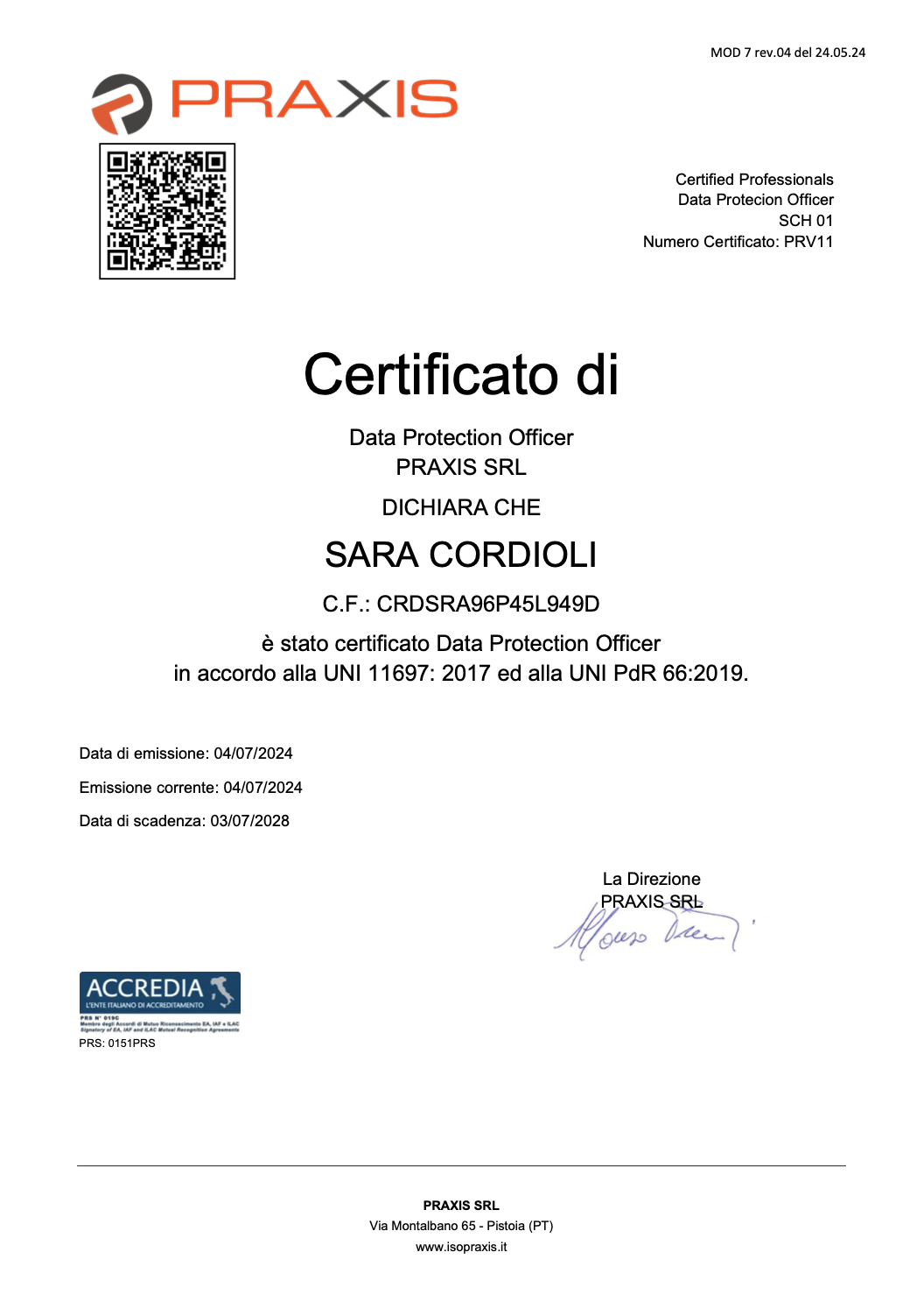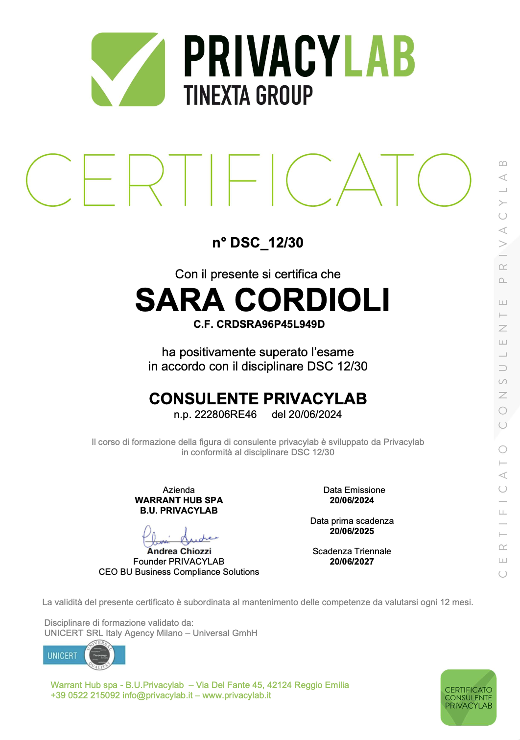 Da anni sono stata inclusa nella grande famiglia di PrivacyLab, realtà italiana che sviluppa la soluzione perfetta per tutte le aziende che vogliono gestire efficacemente la compliance GDPR, oltre alle cogenze documentali ed organizzative. Un prodotto garantito, certificato e assicurato, che supporta Consulenti e DPO al fine di fornire la miglior tutela possibile alle aziende.